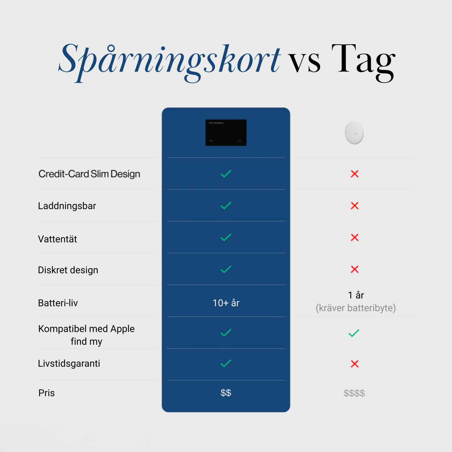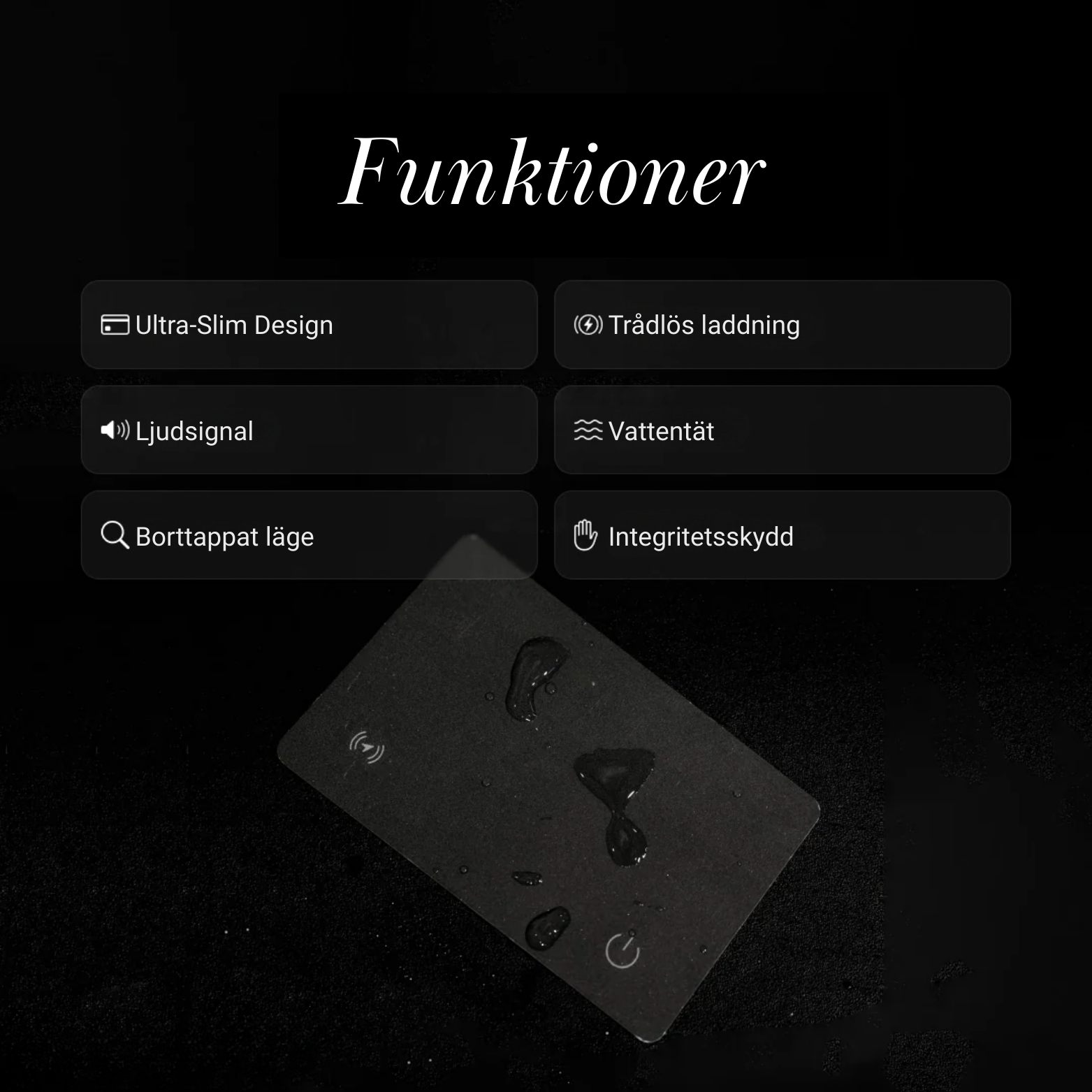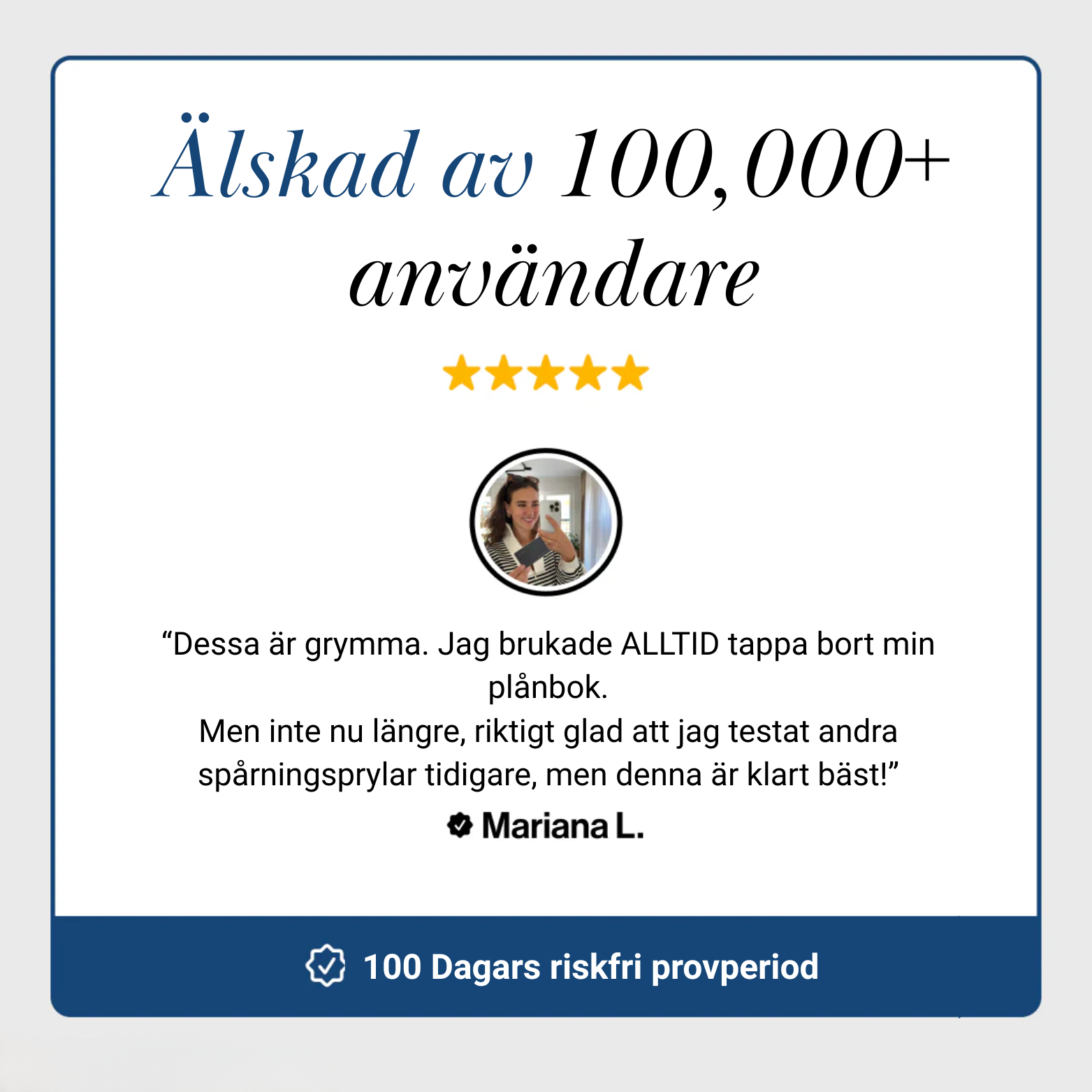 Vi sticker ut. Detta kort fyller de luckor som en Airtag inte lyckades med. Med endast 1.8 mm. Smidig. Pålitlig. Stilren.